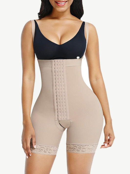 Front Open Hooks Crotchless High Compression Fajas Bodysuit