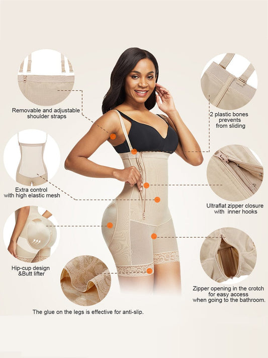 Plus Size Full Body Shaper Butt Lifter Removable Straps